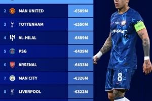 ⑤ 巴黎圣日耳曼 :4.39亿