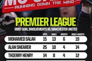 体育资讯10月17日讯 北京时间10月19日晚上,利物浦将在英超第8轮比赛中主场对阵曼联,Squawka统计了球员在对阵曼联的英超比赛中的参与进球数量,萨拉赫19球居首。