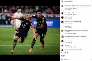 本场比赛基米希打入赛季首球,他也在社媒晒出庆祝照,配文调侃道:“凯恩小心了,我要追上你了!”